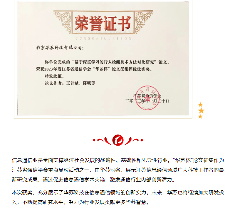 喜訊!華蘇科技在2023年江蘇省通信學(xué)會“華蘇杯”論文征集中斬獲佳績