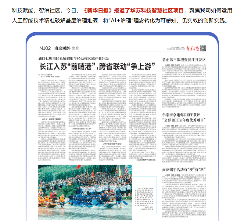 近日,《新華日報》報道了華蘇科技 智慧社區(qū)項目,聚焦我司如何運用人工智能技術(shù)精準(zhǔn)破解基層治理難題,
