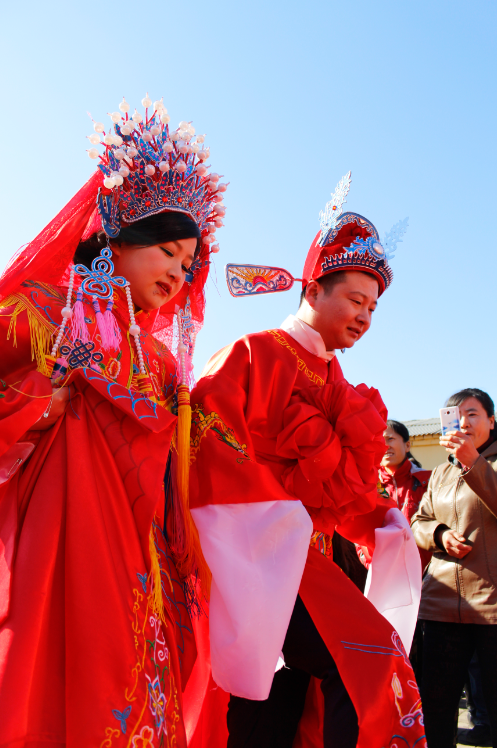 一路上鑼鼓聲聲響,眾人喜洋洋,嗩吶的旋律回蕩在空中,吸引了周邊人驚羨的目光。