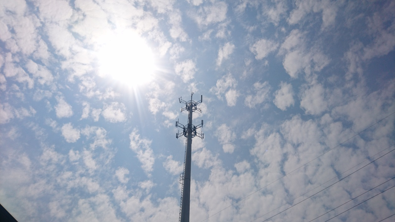 1、仰望天空,不是文藝,只是仰望那高塔的天線和正在調(diào)整的塔工。